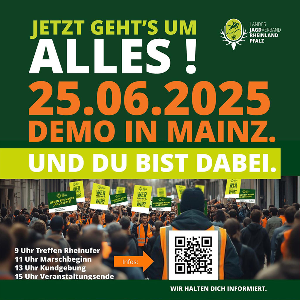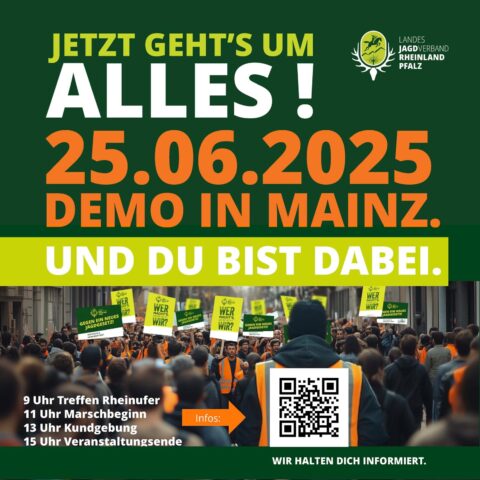 Auch in Rheinland-Pfalz geht es um weitreichende Einschnitte in Jagdpraxis, Hege und Verantwortung. Deshalb rufen wir zur Unterstützung der Demonstration gegen die geplante Novellierung des Landesjagdgesetzes in Rheinland-Pfalz auf!