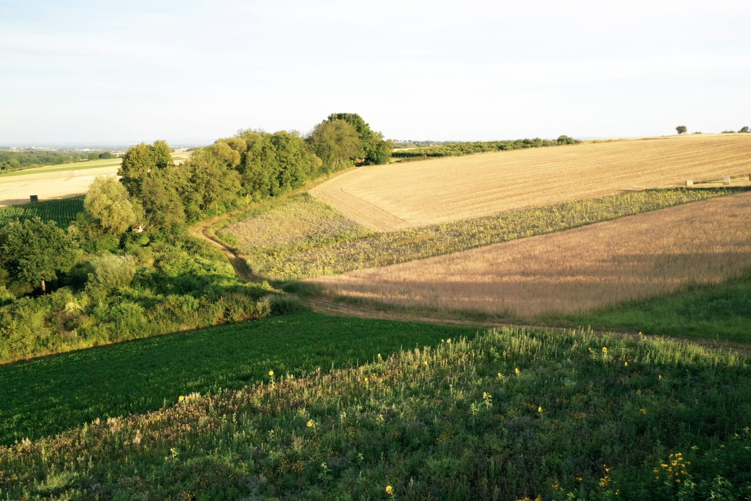 Strukturreiche Flächen, kleinparzellige Agrarflächen, Blühstreifen umsäumt von Hecken bieten Nahrung, Schutz und Deckung für viele Arten. Foto: Markus Stifter