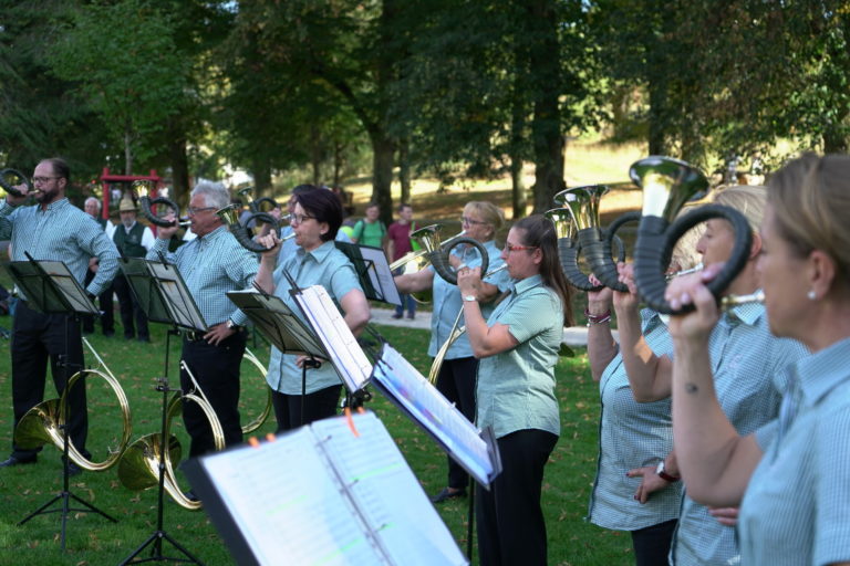 Jagdhornbläsergruppen aus ganz Hessen und Bayern präsentierten „Jagdhornklänge im Röthelbachtal“ an der Landesgartenschau